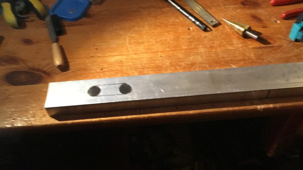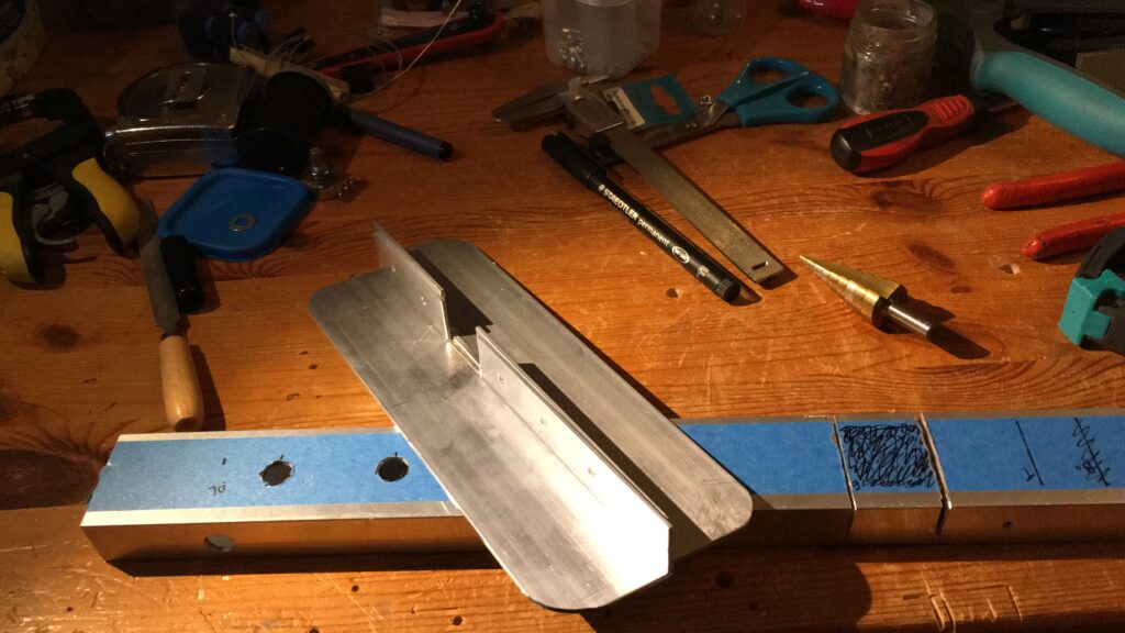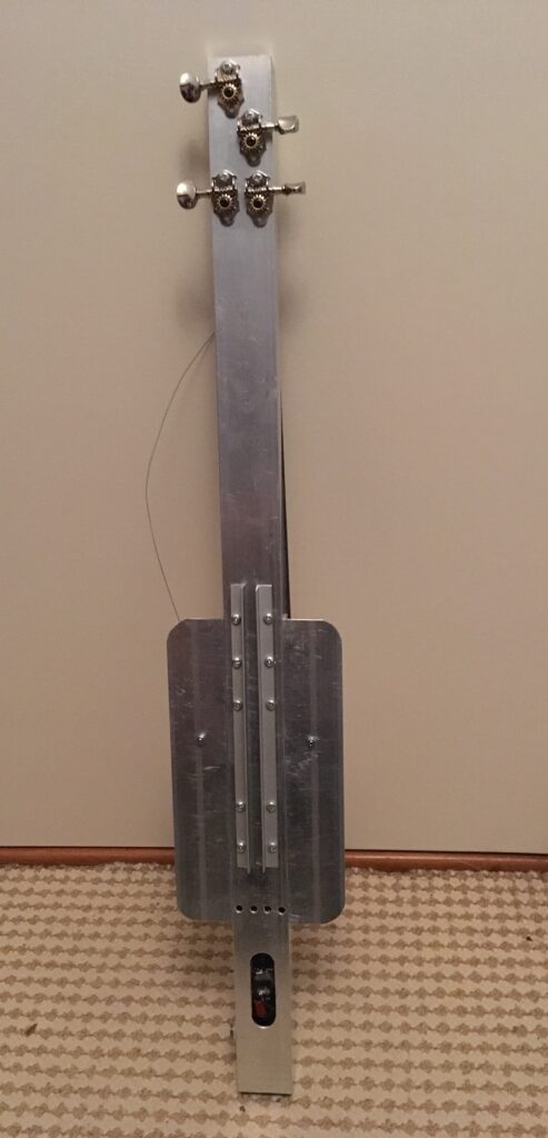 Ukulele gemaakt van een aluminium balk.
